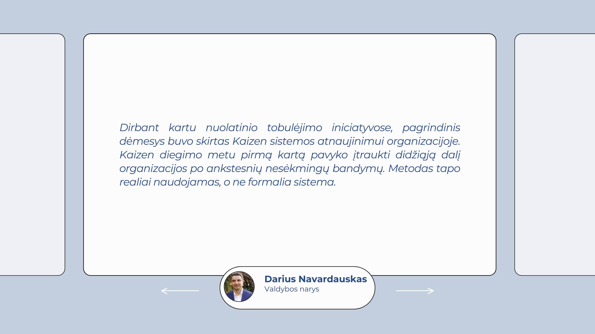 Padedu organizacijoms paversti nuolatinį tobulinimą realia kasdienio darbo praktika, kai įprasti veikimo būdai ima strigti. Šioje srityje dirbu nuo 2018 m.